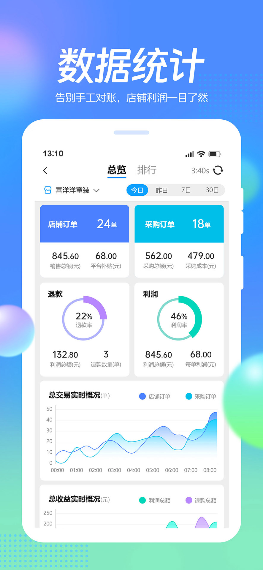 1、后台能够清晰展示每一笔订单的利润构成,方便商家进行财务核算与经营分析。