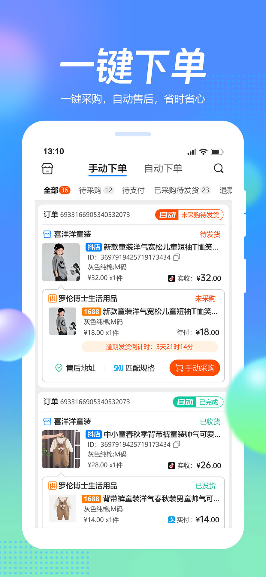 5、在订单中心查看自动生成的采购单,并监控物流同步状态。