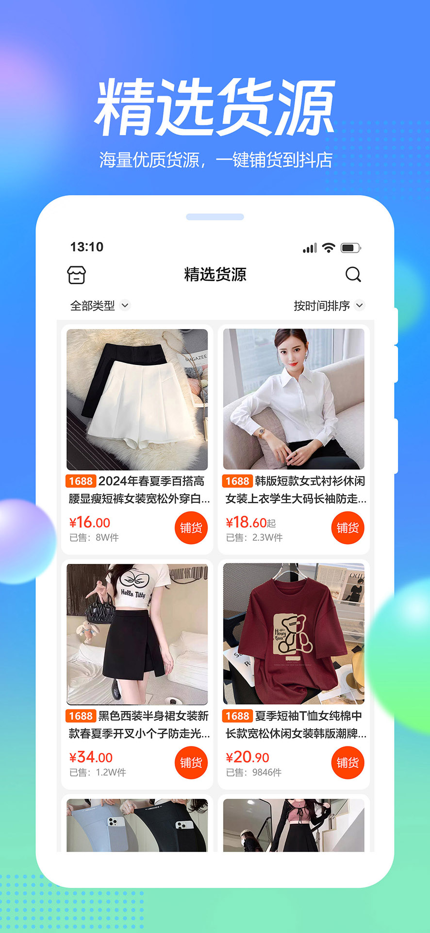 2、在货源市场浏览商品,将选中的商品加入铺货列表。