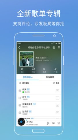 通过酷狗账号实现云端音乐同步,不论在哪台设备上登录,都能随时随地享受自己的音乐列表,真正做到音乐无处不在。