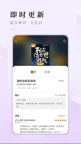 4、实时评论和评分系统,对阅读的小说进行评价和讨论,分享自己的看法。