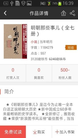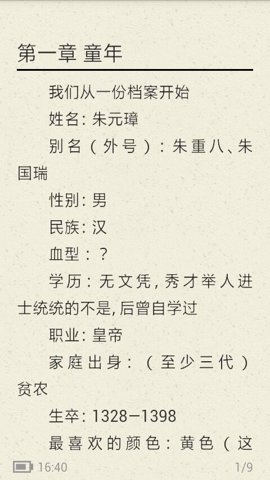 应用内的内容基于真实的历史资料,用户不仅可以阅读小说,还能了解明朝的政治、经济与文化背景。