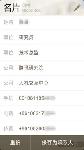 4、名片识别功能,让用户轻松管理社交信息,拍照即可将名片信息保存到手机中,方便日后查找。