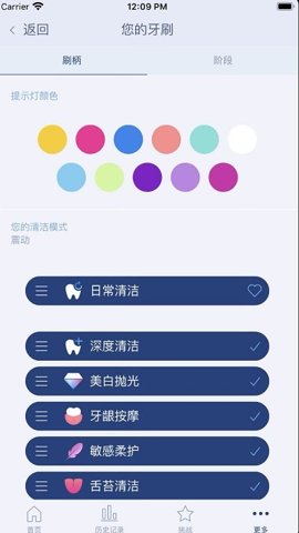 1、计时器功能,选择不同的计时器视图,软件会引导用户在医生建议的2分钟内均匀清洁整个口腔。