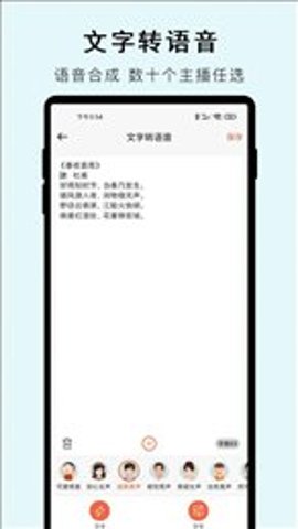 2、文字转语音:用户输入文字后,可以选择多位主播进行语音合成,并一键保存生成的音频文件。