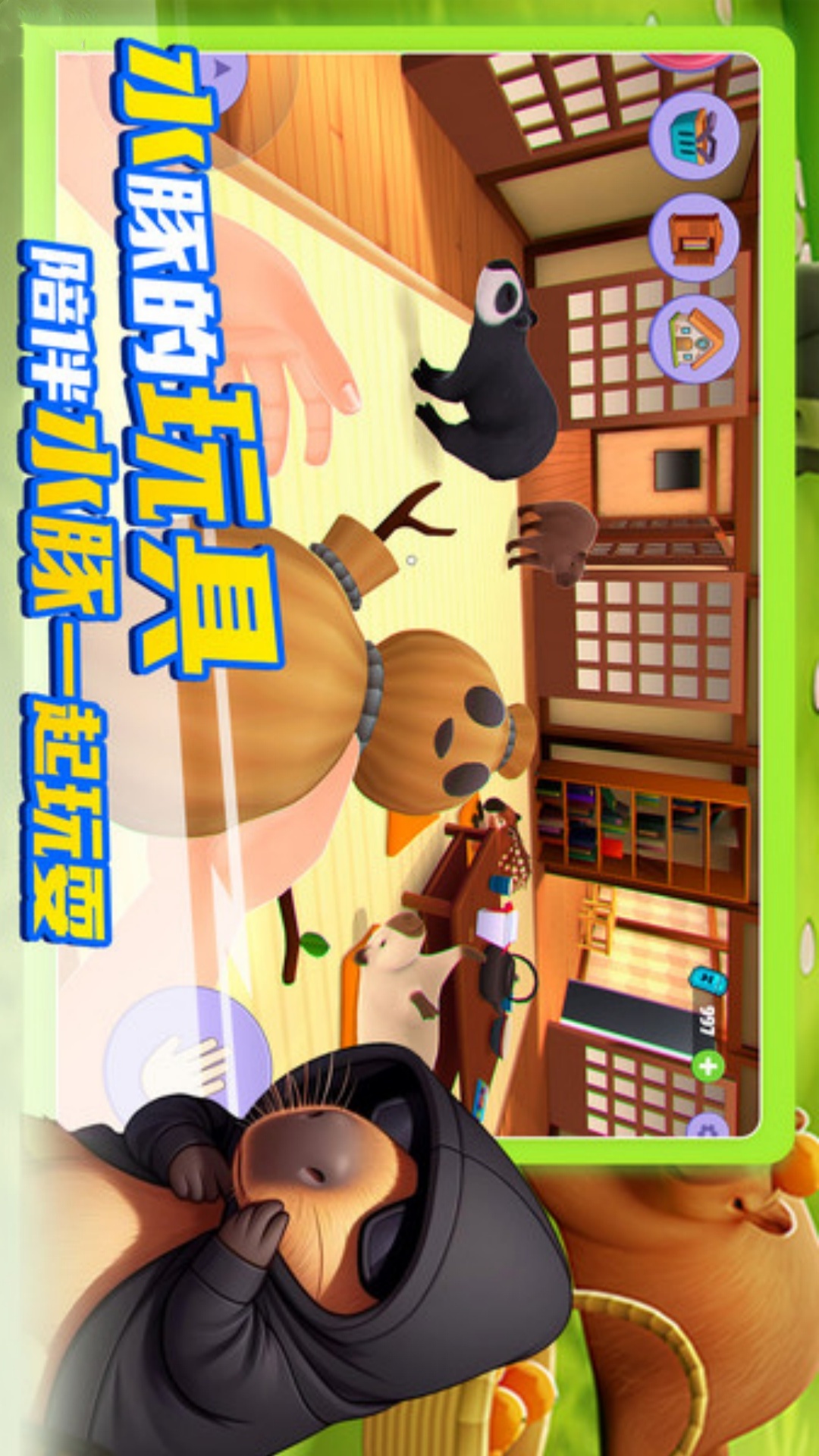 2. 多样化的养成玩法:除了喂食和洗澡,玩家还可以为水豚布置家园,增加它们的幸福感。