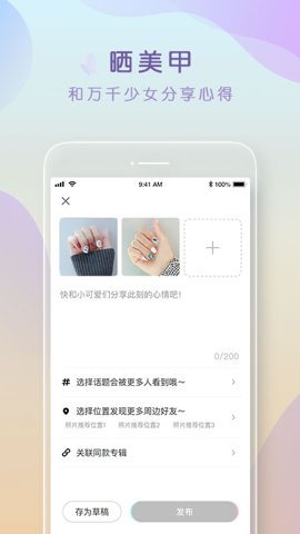 4、分享功能,将自己的美甲作品分享到社交平台,与朋友分享美好时刻。