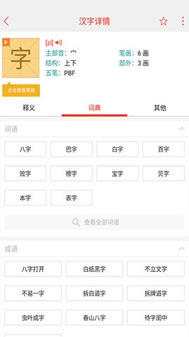 2、生字表功能:软件会自动记录用户查找过的生字,方便复习和巩固记忆。