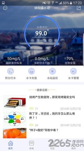 在健康水站的主界面上找到自来水监测模块,点击进入即可查看最新的水质信息和相关数据。