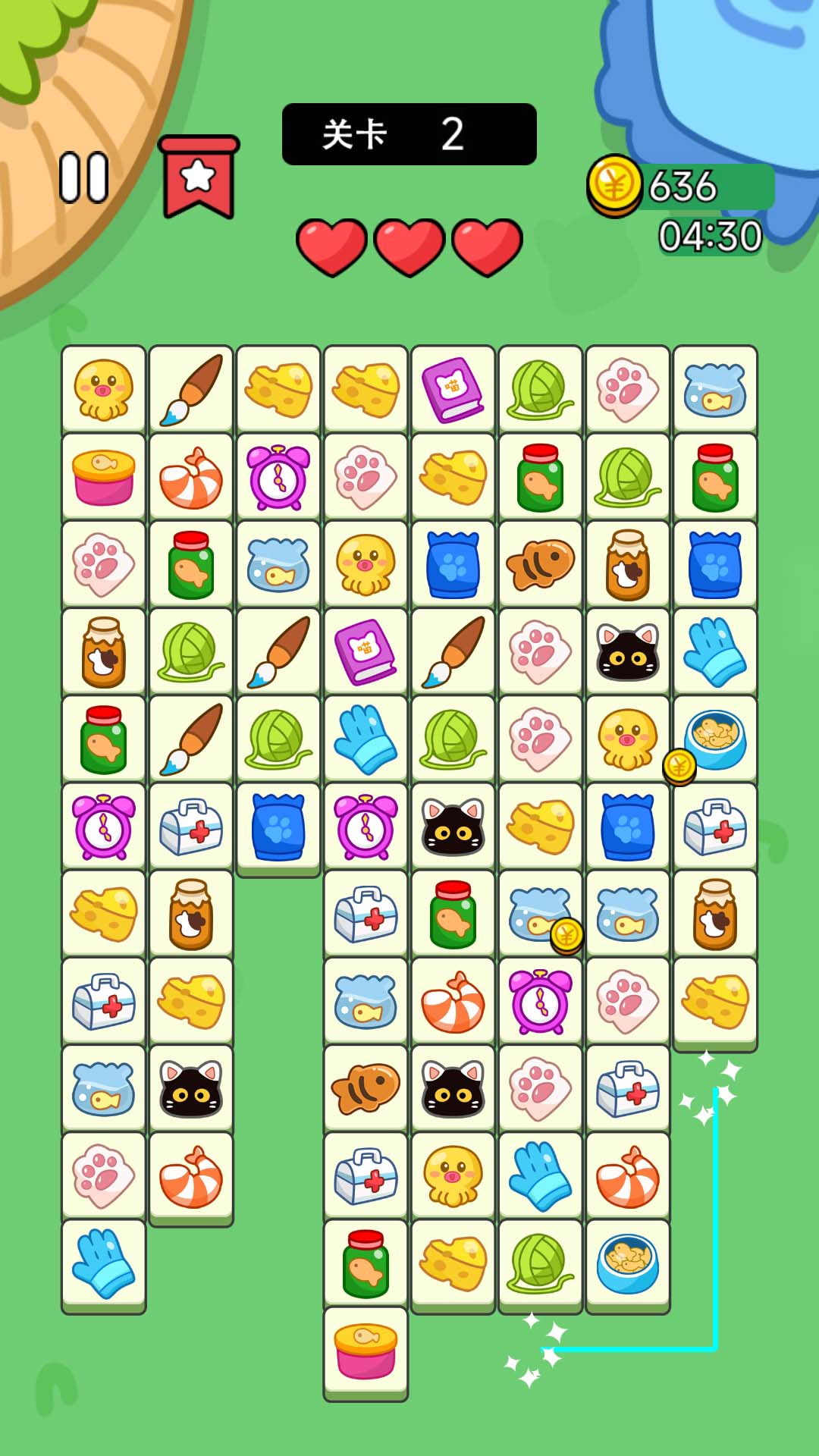 1. 经典连连看玩法:玩家需要通过点击相同的砖块进行连线消除,连线的路径不能有其他砖块阻挡,简单易懂的规则让每位玩家都能轻松上手。