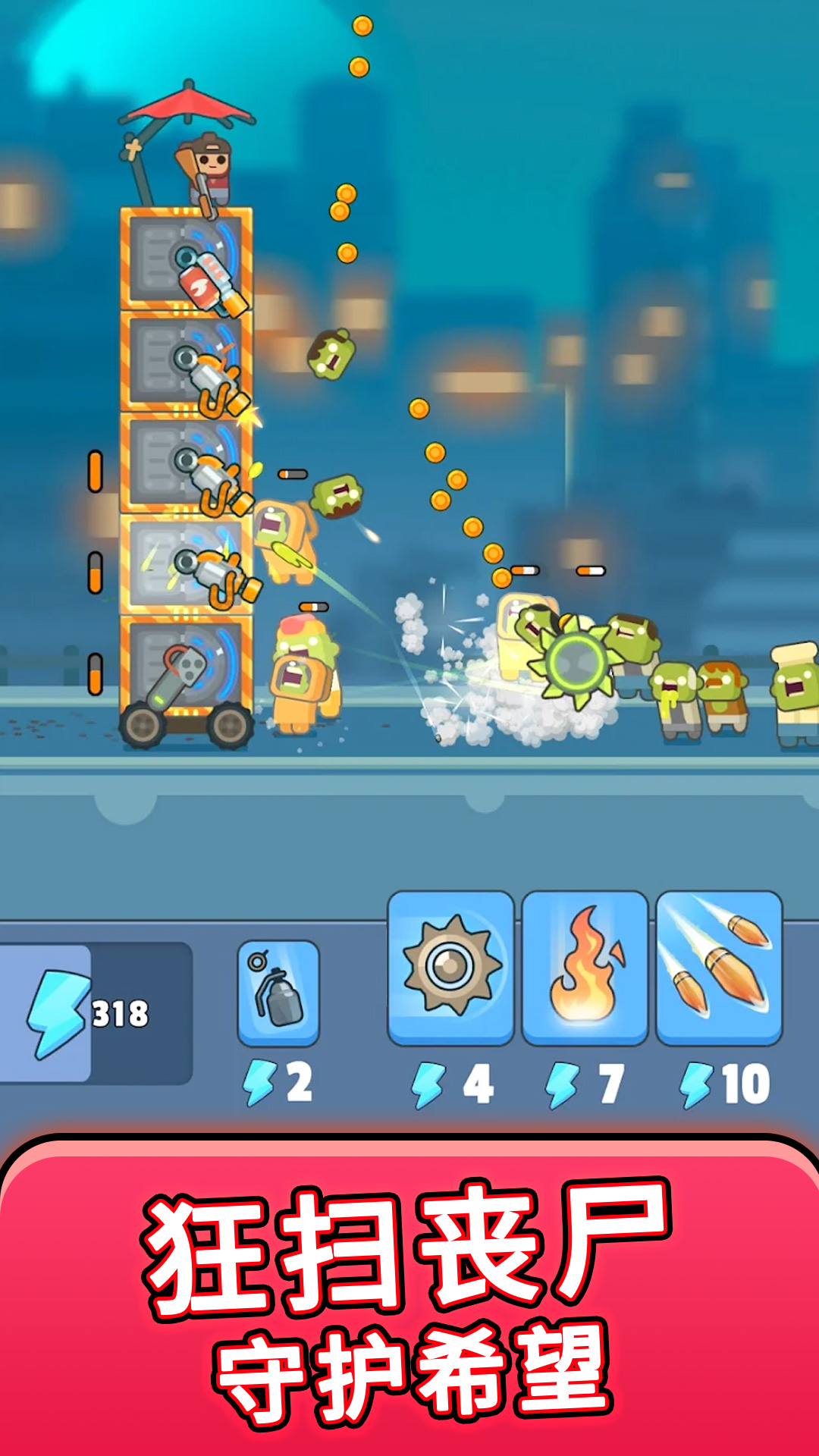 2. 塔防与生存结合:游戏中不仅需要建立防御塔来抵御丧尸,还需要合理配置资源,制作武器和道具。玩家需要在战斗中不断调整策略,以应对不同类型的丧尸攻击,保持生存。