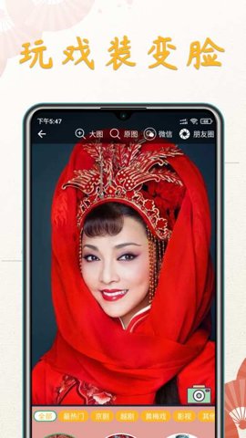 1、戏装变脸:通过人脸识别技术,体验到戏装变脸的乐趣,选择不同的戏曲模板进行互动。