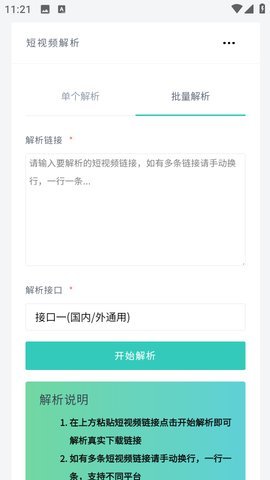 1、批量解析:输入多条短视频链接,轻松实现批量解析,适合需要处理大量视频的用户。