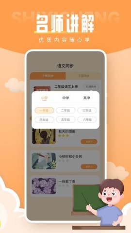 您可以根据孩子的年级和学习需求,通过软件的课程分类功能快速找到符合要求的课程。