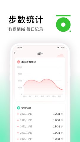 1、支持每日步数记录,随时查看自己的步数变化,帮助制定合理的运动计划。