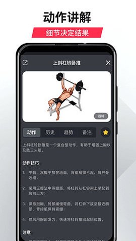 2、数据记录与分析:能够快速记录每次训练的数据,包括动作、组数、次数等,帮助用户追踪训练效果。