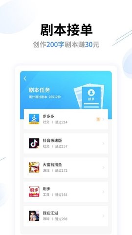 在首页浏览可接取的任务,选择感兴趣的任务进行申请,审核通过后即可开始创作。