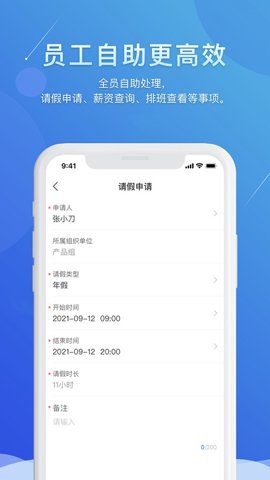3、具备灵活的请假和加班申请功能,通过手机一键提交,方便快捷。