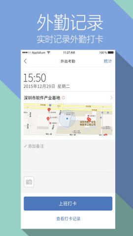 1、在线打卡,员工可通过手机进行考勤,支持定位打卡,确保考勤的真实性。