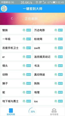 2、签到失败的贴吧会自动置顶,用户无需浪费时间去查找,方便快捷地进行后续操作。