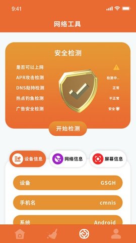 进入网络安全检测模块,软件会自动开始扫描当前连接的WiFi,检测是否存在钓鱼网站或假冒网络。