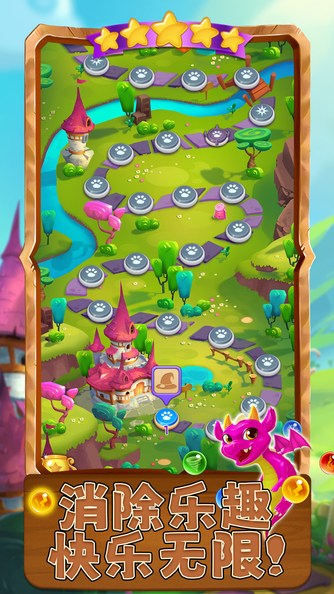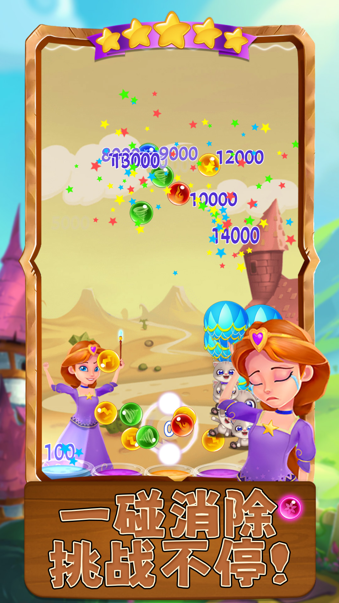 彩球碰碰消是一款极具趣味性的休闲消除类手游,玩家将与爱丽丝公主携手,穿越魔法世界,解救被恶魔龙掳走的猫咪宝宝。游戏采用了色彩斑斓的泡泡元素,玩家需要通过发射泡泡来消除相同颜色的泡泡,完成各类任务。随着关卡的推进,难度逐渐增加,丰富的道具和技能将帮助玩家克服重重障碍,享受轻松愉快的游戏体验。