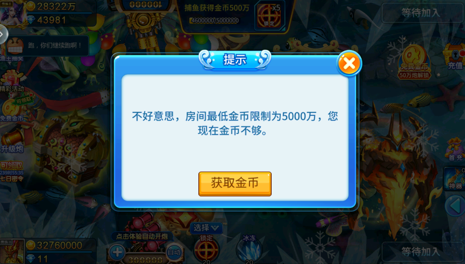 2、炮台类型和攻击模式提供了多种选择,根据当前鱼群的分布情况,快速切换不同的攻击策略。