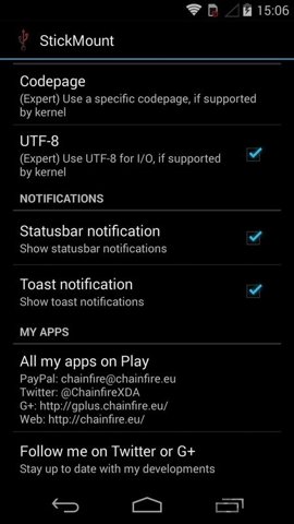 1、自动挂载USB设备,用户连接后,StickMount会在/sdcard/usbstorage/目录下自动挂载,方便访问。