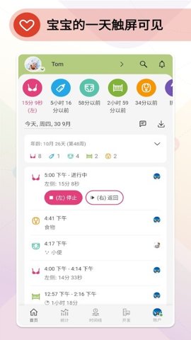 2、这款新生儿喂奶和尿布追踪器每天提供母乳喂养持续、牛奶量以及新生儿日志中有关婴儿活动的其他信息的摘要。