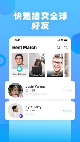 1、实时语音交流:与来自全球的英语学习者进行面对面的语言练习,提升口语流利度。