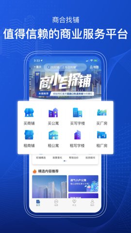 商合找铺app是一款专注于商业地产的在线平台,旨在帮助用户轻松找到理想的店铺或办公场所。无论您是想购买还是租赁,商合找铺都能为您提供丰富的选择。通过精准的地段筛选,您可以快速找到符合需求的商铺,所有信息公开透明,直接在线联系,省去繁琐的中介环节。这个平台不仅提供了超多的信息说明,还确保您在寻找商铺的过程中,能够享受到更高效的服务体验。