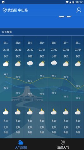 2、在主界面上,看到当前天气状况以及未来几天的预报,便于快速了解天气变化。