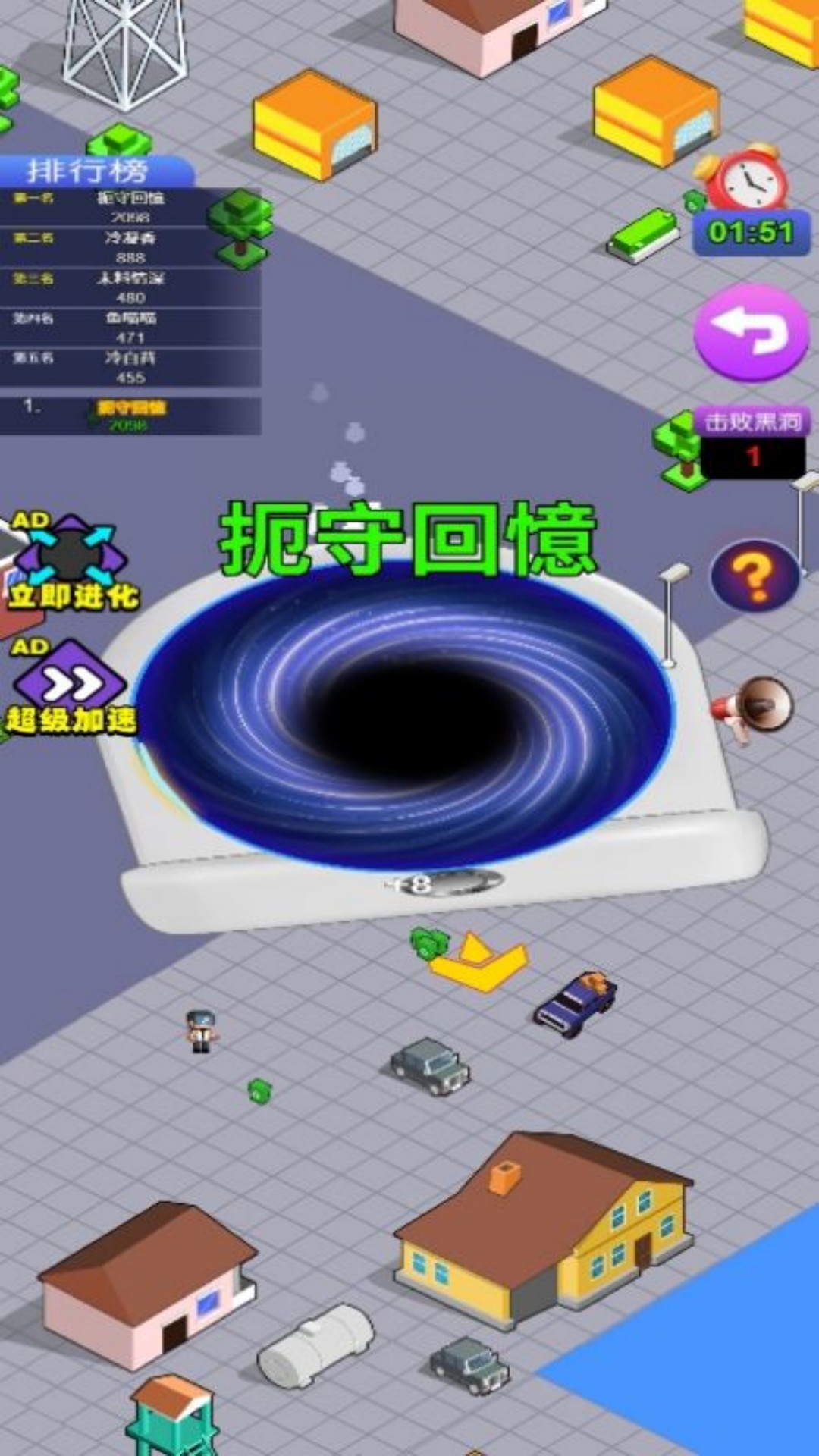 1. 吞噬与进化:玩家需要不断吞噬周围的物体,只有通过吞噬才能获取养分,提升黑洞的等级与威力。每当黑洞的等级提升,就会解锁新的能力,让玩家在吞噬的过程中体验到成长的乐趣。