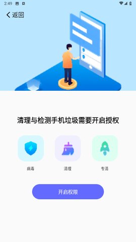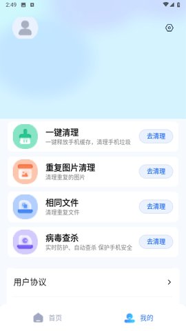 1、首先,用户需要在手机上下载并安装优创安全清理应用,打开软件后,进入主界面。