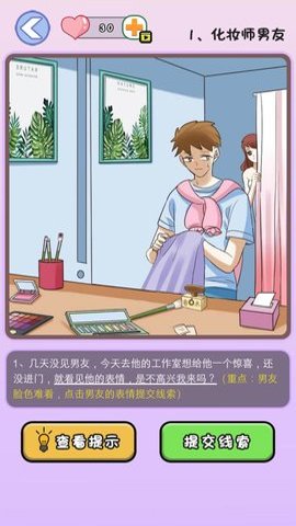 1、游戏的主要玩法是通过观察场景中的细节,收集线索,找出渣男渣女,玩家需要在每个关卡中进行深入的调查与推理。