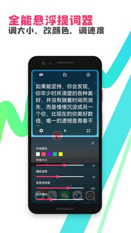 在悬浮提词器功能中,调整字体、播放速度及颜色等设置,满足不同场景的需求,确保台词的清晰可见。
