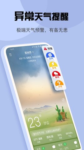 2、提供16种突发气象灾害预警信号,确保用户能够第一时间了解台风、暴雨等极端天气的风险。