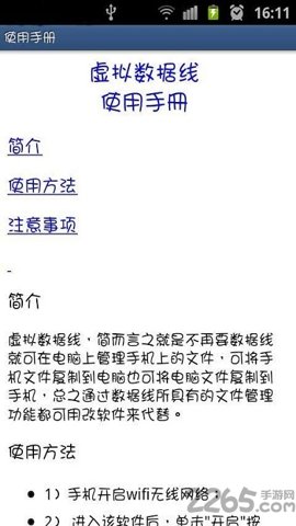 虚拟数据线彻底摆脱了对数据线的依赖,只需在WiFi环境下便能实现手机和电脑间的文件传输,方便快捷。