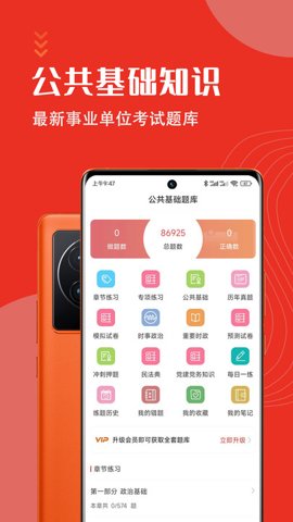公共基础知识考试题库app是一款专为备考事业单位考试而设计的题库类软件。它汇聚了近年来各省市的考试真题,能够帮助考生全面掌握考试重点与难点。通过海量题库的练习,用户不仅可以提升自己的解题能力,还能熟悉考试的出题形式。这款应用致力于为用户提供高效的备考体验,帮助大家在竞争激烈的考试中脱颖而出。