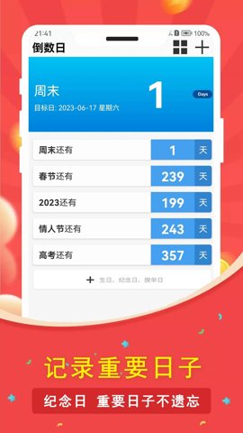 1、倒数日功能,新建重要日子的倒数事件,及时提醒自己注意即将到来的重要时刻。