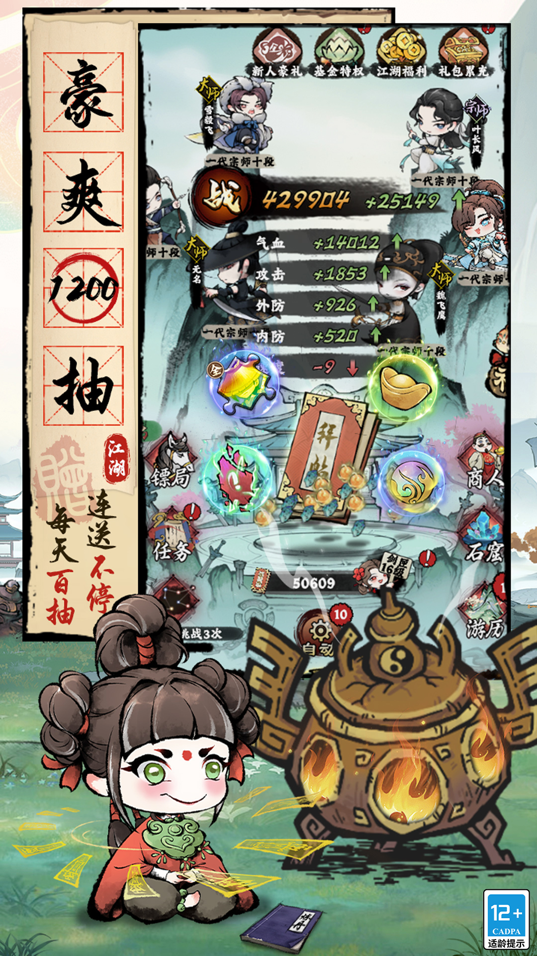 大剑仙是一款放置江湖游戏,玩家将化身为一名少年剑客,凭借着坚定的信念与勇气,在武道的道路上不断前行。虽然角色起初并没有超凡的武学和强大的力量,但他却拥有着一颗追求卓越的心。你将与志同道合的伙伴们结成帮派,携手共进,逐步实现自己的梦想。在这个过程中,玩家不仅能体验到紧张刺激的战斗,还能享受到策略与团队合作的乐趣,感受江湖的热血与情义。