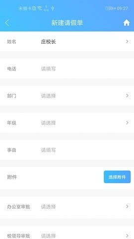 5、如果需要请假,学生可以在“请假申请”模块中填写相关信息并提交,老师会及时进行审核。