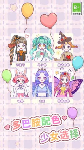 在《公主爱上妆》这款换装小游戏中,玩家将进入一个充满梦幻色彩的世界,化身为时尚造型师,为可爱的公主打造各种华丽的造型。游戏中,您可以为女主角挑选不同风格的服装,搭配独特的妆容,甚至可以为她设计各式各样的美甲,尽情展现自己的创意和时尚感。每一次换装都是一次全新的体验,仿佛置身于真实的化妆场景中,让人沉浸在这个充满乐趣的化妆冒险中。