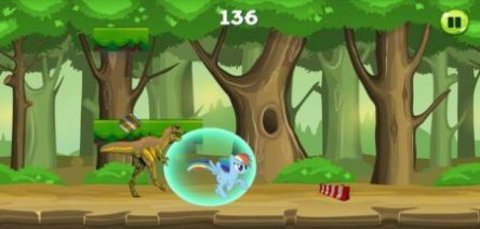 1、玩家可以操控小马穿越丛林,挑战各种恐龙,体验到刺激的冒险过程,感受到不断的紧张与兴奋。