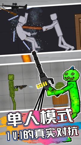 武器的使用是游戏的一大亮点。玩家可以在武器栏中选择自己喜欢的枪支,接着将小人的手抬起,并用鼠标将枪拖动至手部合适的位置。绿色的线框会提示你位置正确,此时只需点击F键,小人就能顺利拿起武器,准备迎接接下来的挑战。