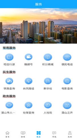 1、下载并安装皖源潜山应用,打开后进入主界面。