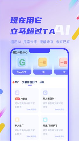 一步AI-人工智能创作助手app采用了业界领先的AI技术,为用户提供最真实和高质量的交互体验。向提问、闲聊、请教各种主题,无论是寻找贴心的朋友分享心情,是下达命令节省和精力,AI聊天和AI文字创作功能都能满足您的需求。