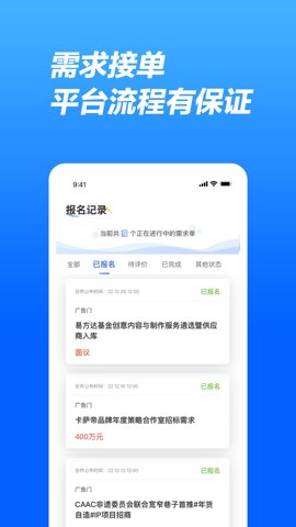 有单iBrief是一款专为广告主打造的需求撮合平台,旨在帮助用户更高效地找到合作伙伴。通过这个软件,广告主们可以轻松浏览大量的营销订单,快速找到合适的服务商。平台提供的精准推荐服务,可以有效解决订单供需问题,使广告主在开展工作时更加顺畅。无论是寻找服务商还是发布需求,这款软件都让合作变得更加简单和高效。
