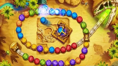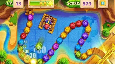 在祖玛秘境中,玩家的目标是通过发射灵魂石球来消除相同颜色的小球。游戏开始时,玩家会看到一条不断向前移动的球链,玩家需要准确地瞄准并发射石球,只有当三个或更多相同颜色的小球相连时,它们才会被消除。随着关卡的推进,球链的速度会逐渐加快,增加了游戏的挑战性。