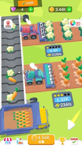 2、通过升级农场设施和雇佣工人,玩家可以显著提高生产效率,进一步增加收益,发展更大的农场。